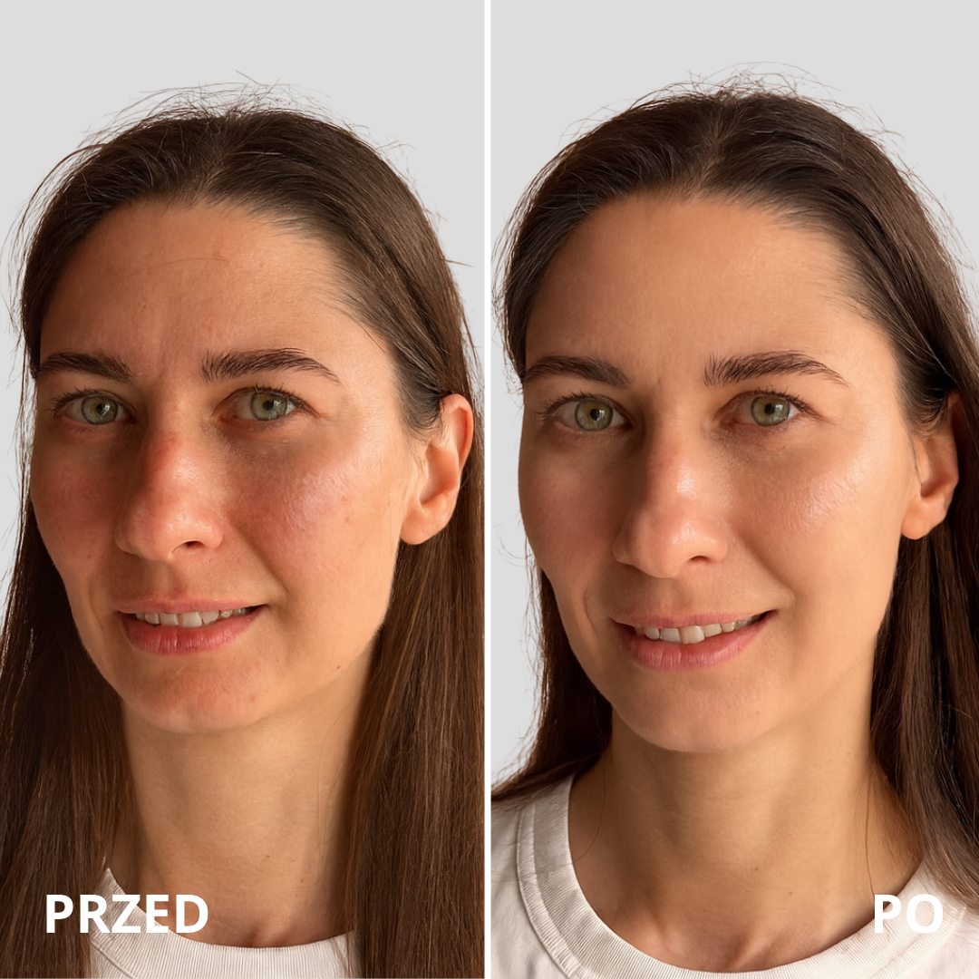 Nie. Formuła jest lekka jak krem nawilżający i pozwala skórze oddychać. Nie jest lepka ani tłusta – tak komfortowa, że prawie zapomnisz, że masz ją na sobie.